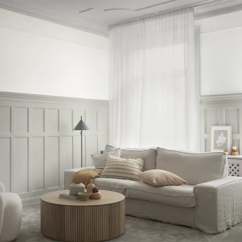 Måla. Måla med ad.finess i valfri glans. Använd rikligt med färg, dock inte så mycket att den rinner på stående ytor. Använd en helsyntetisk pensel av hög kvalitet eller en lackfärgsroller. Vänta ett dygn innan andra strykningen. Tänk på att vattenburen färg torkar snabbt, undvik därför drag och arbeta snabbt för att slippa ett kladdigt eller randigt resultat.
