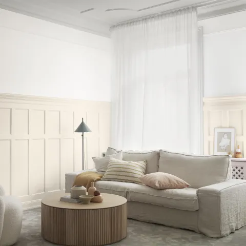 Jag skulle välja Old rose på väggarna i sovrummet och komplettera med ett sängbord målat i Fudge. Kulören Torv passar fint i hallen. Passa även på att måla in lister och socklar i samma kulör, det får en väldigt fin effekt. Kulören Pinje kan passa i ett matrum och få en fin balans mot möbler i lite mörkare trä. Chianti kan man måla på en dörr och skapa en kul effekt mot övriga väggar.