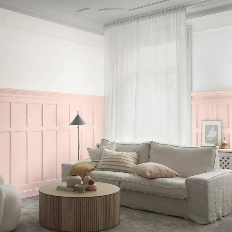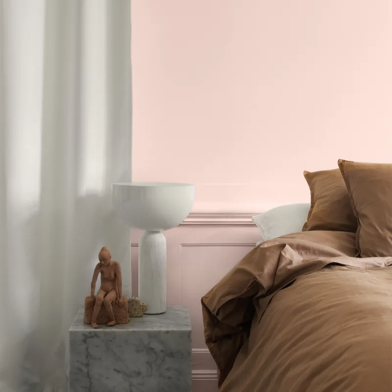 Balett är en dämpad varmrosa kulör som ligger nära nyansen på klassiska tåspetsskor. Den varma undertonen ger en mjuk och inbjudande känsla och kulören passar särskilt fint tillsammans med gröna och blå nyanser för en balanserad och harmonisk palett. Den är även mycket fin till krispigt vit.