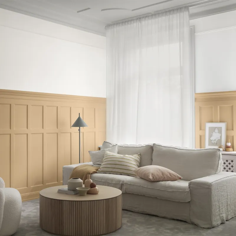 Teddy är en mild och varm gulbeige nyans som ger en inbjudande och bekväm atmosfär. Det är en diskret men samtidigt närvarande kulör som skapar en harmonisk känsla, vilket gör den till ett utmärkt val för olika typer av utrymmen. Den lättar upp rum med mindre naturligt ljusinsläpp, till exempel i norrlägen.