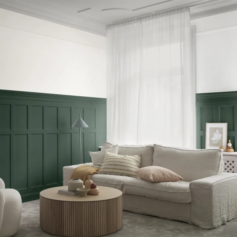 Chicken coop är en vacker och tidlös mörkgrön nyans. Med sin mättade och djupa karaktär ger den en känsla av harmoni och naturnära skönhet till ett rum. Denna kulör är en perfekt partner för varma och neutrala toner, och den skapar en inbjudande och avkopplande stämning.