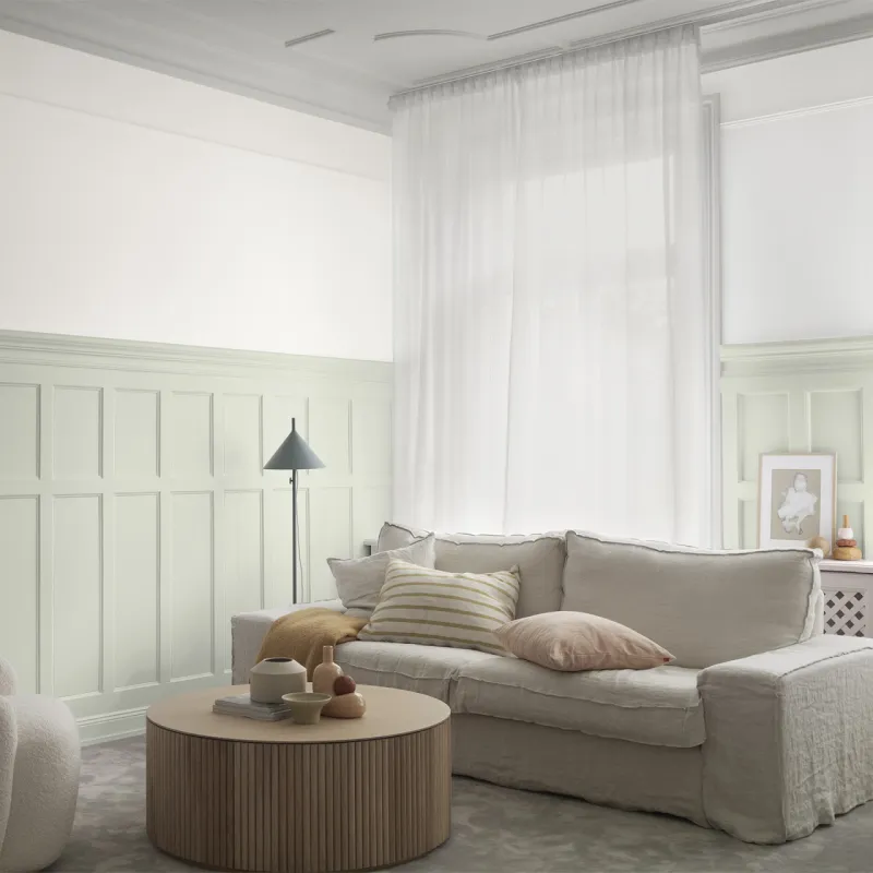 Elegant är en kall och ljus, svagt beigegrön nyans med en blek intensitet. Den är subtil men effektfull och ger en tidlös elegans som är lätt att kombinera med kalla gröna eller blåa nyanser. Passar utmärkt till många typer av miljöer och rum.