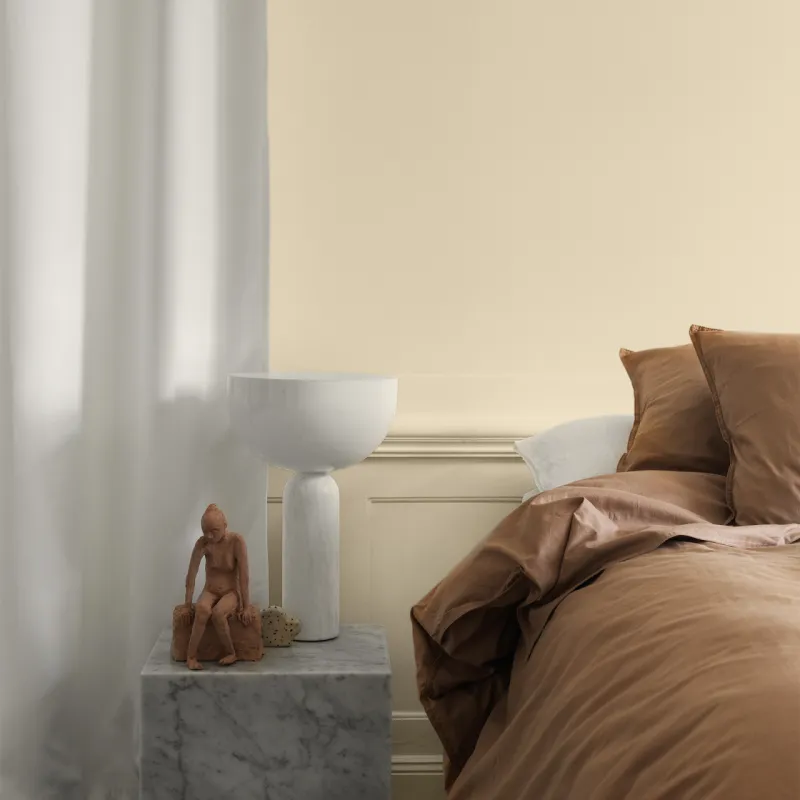 Sånglärka är en mjuk och varm gulbeige nyans med en subtil rosig underton. Den fungerar perfekt att använda tillsammans med andra varma toner som vita, beiga och rosa för att skapa en harmonisk och inbjudande färgpalett. Dess lugna och jordnära karaktär gör den till en idealisk grund för en trivsam stämning.