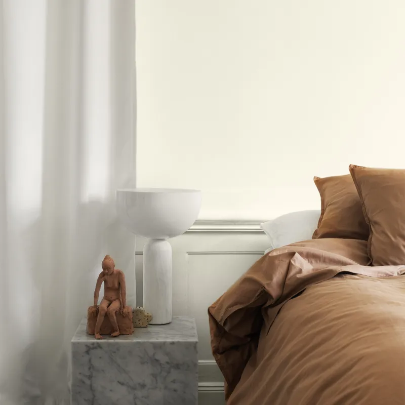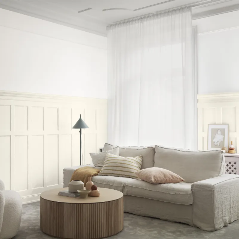 Aioli är en varm vit med en subtil och mild gul underton. Det gör att den känns mjukt vit utan att upplevas som steril. I stället ger den en harmonisk och nästan ombonad känsla i ett rum, samtidigt som den bildar en diskret bas som låter inredningen ta plats och stå i centrum. Aioli passar särskilt bra tillsammans med andra varma kulörer.