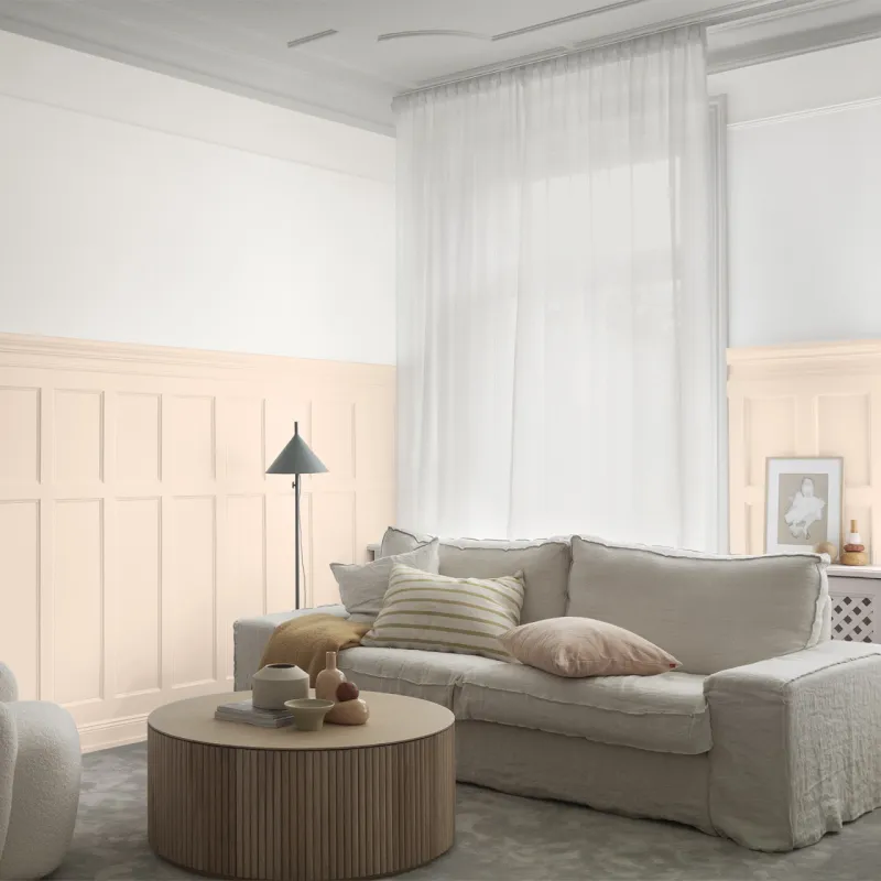 Apricot Nude är en förtjusande ljus aprikos nyans som utstrålar en subtil värme och mjukhet. Den milda nyansen ger en varm och inbjudande känsla, vilket gör den perfekt för att skapa en mysig och trivsam atmosfär. Apricot Nude harmonierar med varmvita toner och ger en subtil touch av elegans och naturlig skönhet till ditt rum. Den passar utmärkt i både traditionella och moderna miljöer.