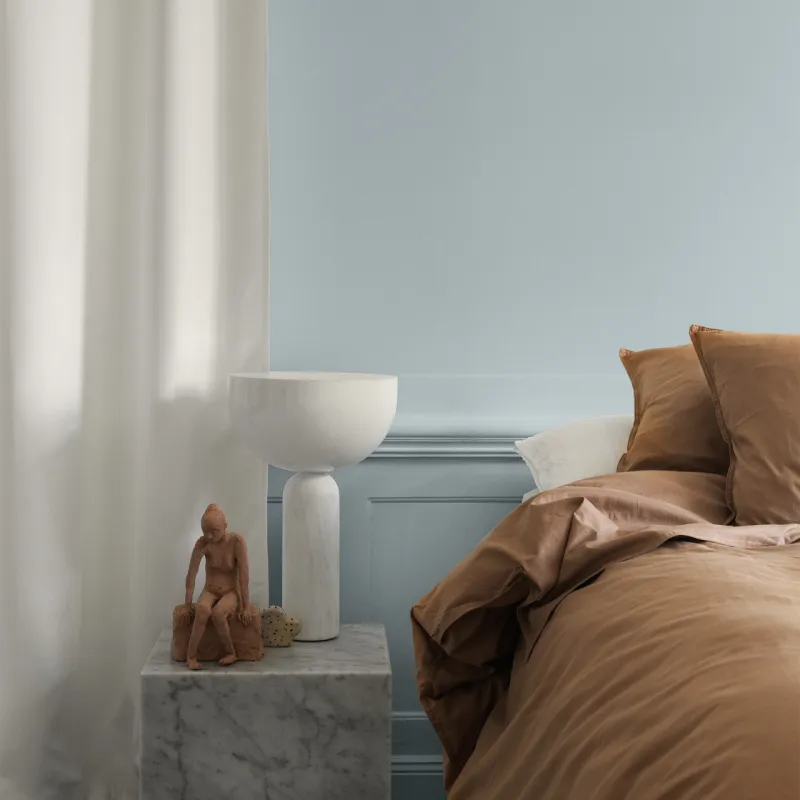 Säl är en dämpad gråblå baston som ger ditt hem en känsla av ro och harmoni. Den subtila nyansen förmedlar en naturlig och lugn stämning och kompletteras vackert av vit, mörkare blå och gråbeiga toner.