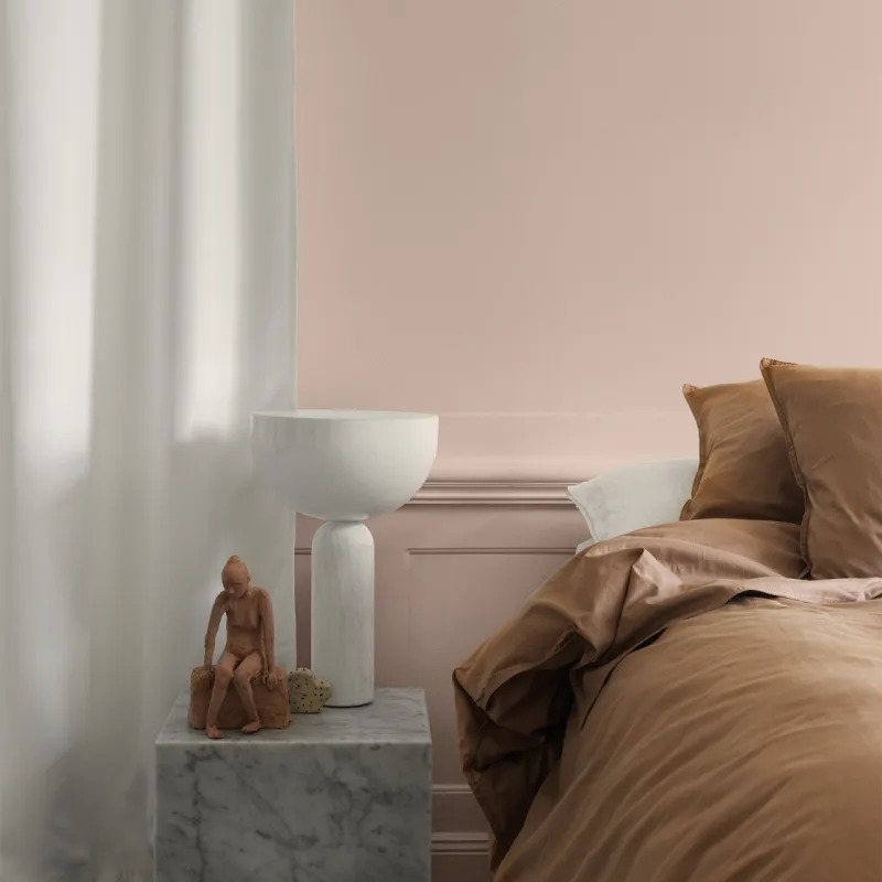 Dahlia är en mörkare beigerosa som upplevs närmast gyllene. Den är varm och klassisk och skapar en trevlig, ombonad och mjuk känsla i ett rum. Fin till varmare vita såsom Emilia White eller Sockervadd.