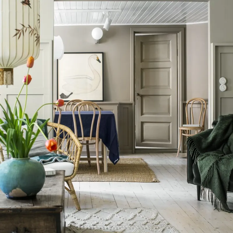 Den upplevda kulören påverkas av faktorer som ljus, glans och yta, samt av andra kulörer och material i kulörens omgivning. Vi rekommenderar att provmåla kulören för att få ett perfekt slutresultat som håller över tid.