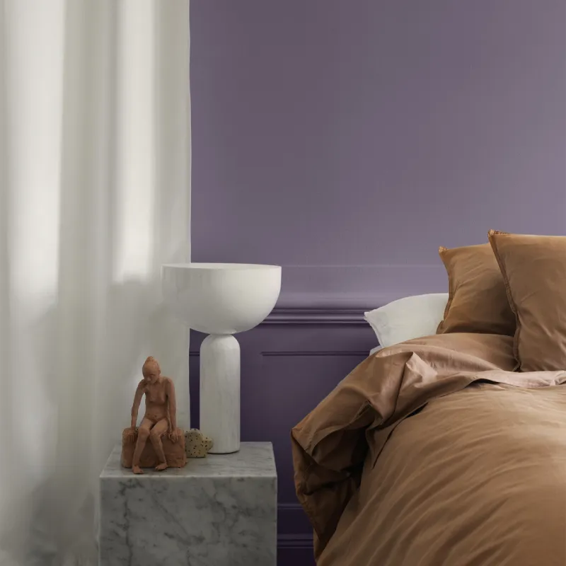 En dämpad, mycket mörk grålila nyans som ger ett sofistikerat och intressant intryck. Purple flock sätter verkligen prägel på ett rum och ger det karaktär. Särskilt fin i utrymmen med mycket naturligt ljusinsläpp och i kombination med andra violetta nyanser – men även till svala toner av blått, rosa, grönt och krispigt vitt.