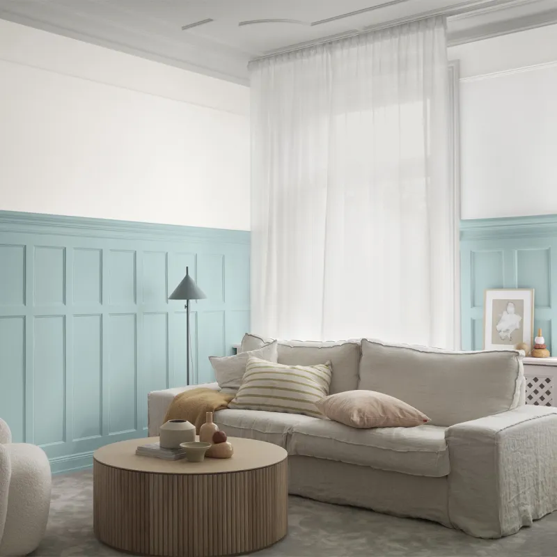 Fjärilslarv är en fantastisk och mångsidig kulör som skapar en frisk och harmonisk känsla. Med sin ljusa och dämpade blågröna ton är den särskilt vacker tillsammans med kritvit samt med svala blå, gröna och rosa nyanser.