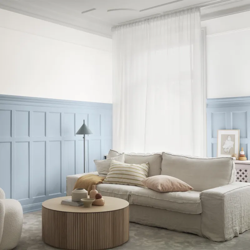 Vreden är en fascinerande kulör som kombinerar ljust blått med en aning rött. Den har en dämpad färgintensitet och passar perfekt ihop med mörkare blå, kalla grå och svala beige nyanser.
