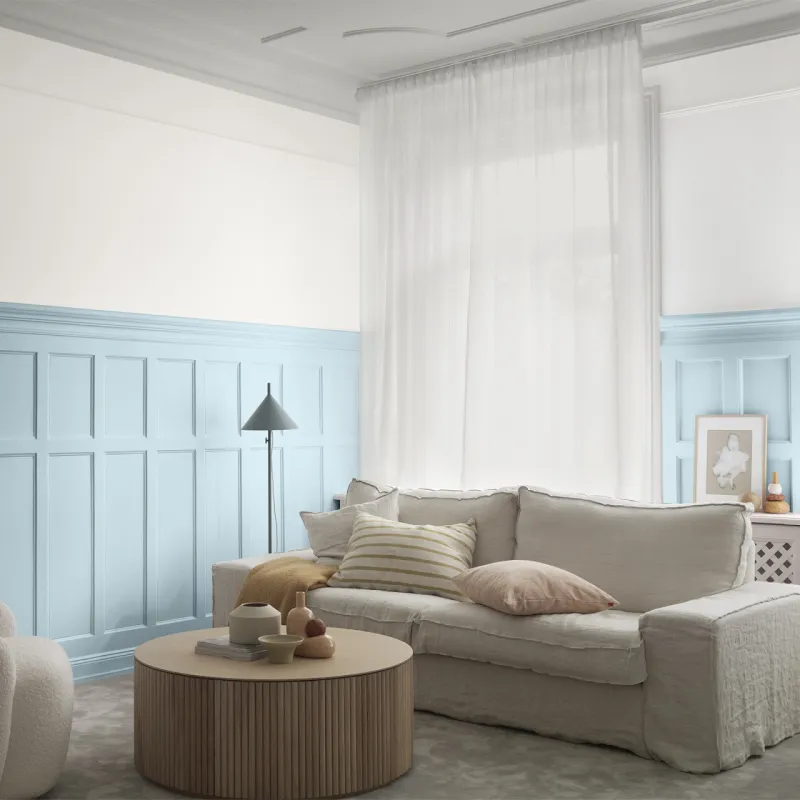 Stratosfär är en klar och ljusblå kulör som för tankarna till en klar sommarhimmel. Med sin livfulla nyans skapar den en ljus känsla och ger en frisk och luftig atmosfär till ett rum. Stratosfär är vacker att kombinera med krispiga vita, svala blå samt rosa och beiga nyanser.