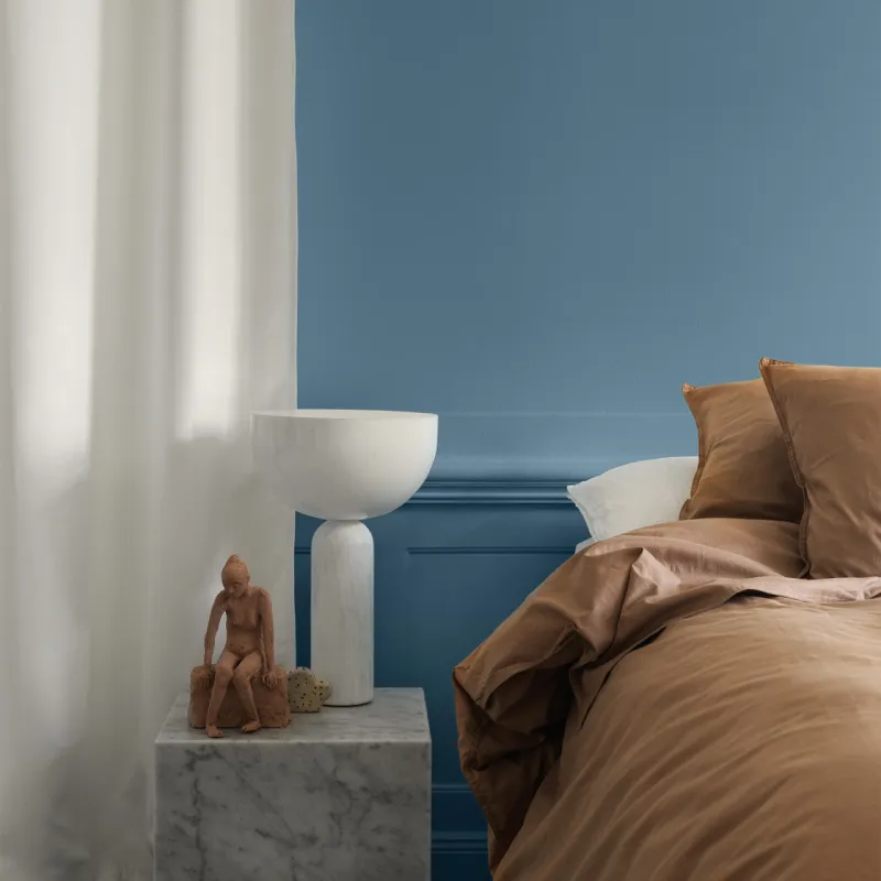 Utforska det dunkla och gåtfulla med kulören Djupet. Det är en dämpad mörkblå kulör som förmedlar en känsla av lugn och mystik. Med sin djupblå nyans liknar den havets orörda djup. Djupet är fin ihop med krispiga vita toner samt andra svala blå, rosa och beiga nyanser.