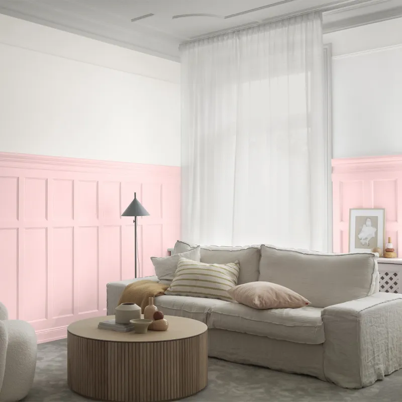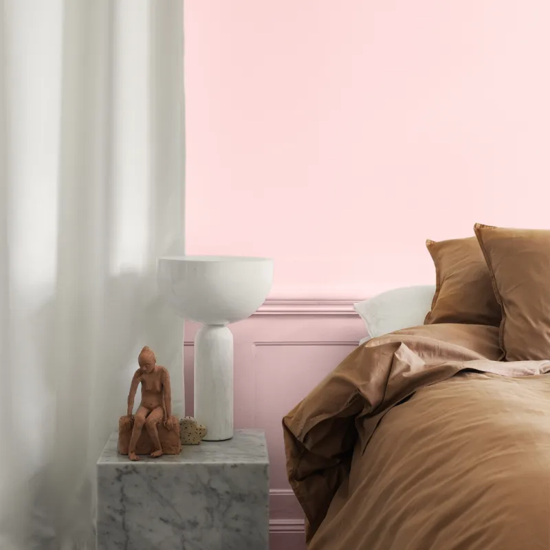 Farmen är en lekfull pastellrosa. Kulören ger en optimistisk känsla och skapar en luftig atmosfär. Farmen är perfekt för att addera en touch av färgglädje till ett rum och passar fint ihop med andra ljusa pastellfärger för att förstärka det charmiga anslaget – eller med neutrala grå och beiga toner för att balansera.