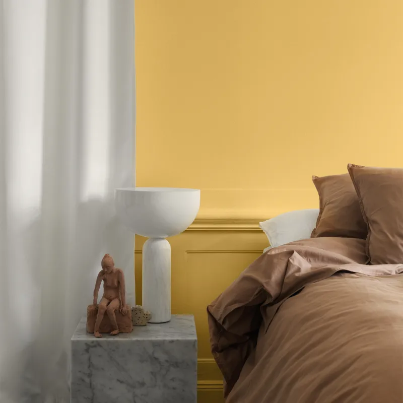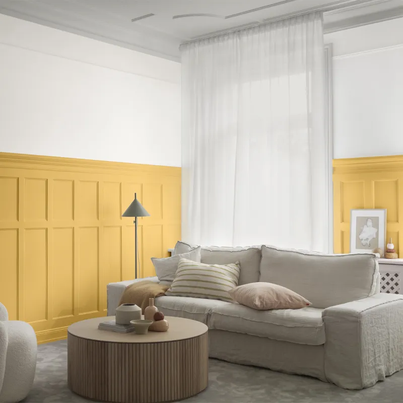 Simba är en förtrollande gyllengul nyans med en subtil rosig underton, som ger en varm och behaglig karaktär. Den fungerar utmärkt tillsammans med varma vita nyanser, varmrosa toner och milda grågröna kulörer. Simba fungerar i många olika typer av miljöer och är särskilt fin i utrymmen med mycket naturligt ljusinsläpp.