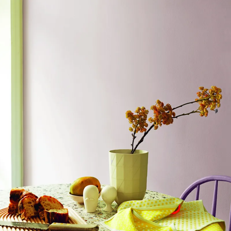 Flinta är en underbar grå kulör – en ljus grårosa ton som är kall och fungerar som en perfekt bas. Den är enkel att kombinera och passar fint till toner av blå, beige, mörkgrön och krispigt vita. Passar till interiörer med mycket trä, naturliga material och växter.