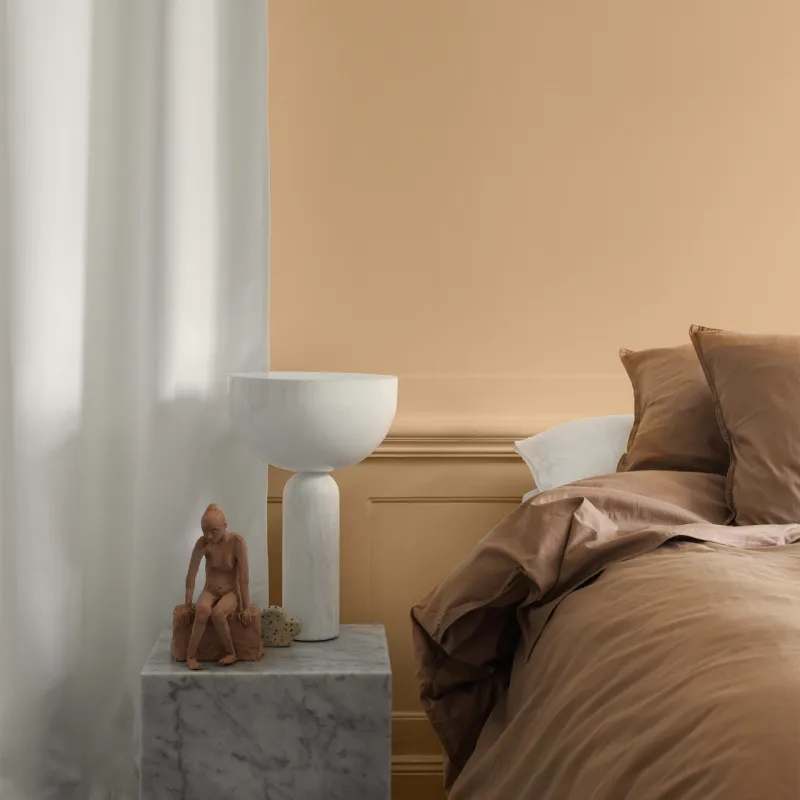 En varm brunbeige kulör som lätt kan associeras med natur och jord. Med sin mättade kulörtäthet ger Torv en stark närvaro och en känsla av djup i rummet. Den passar särskilt bra ihop med röda, gula, gröna och varmvita nyanser.