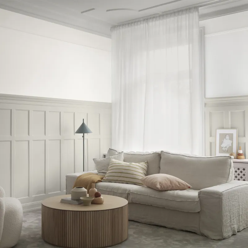 Vågskum är en subtil gråtonad beige kulör som för tankarna till havets mjuka skum. Den matchar vackert med andra svala kulörtoner och skapar en avslappnad och harmonisk atmosfär i rummet. Perfekt för att ge en lugn och naturnära känsla.