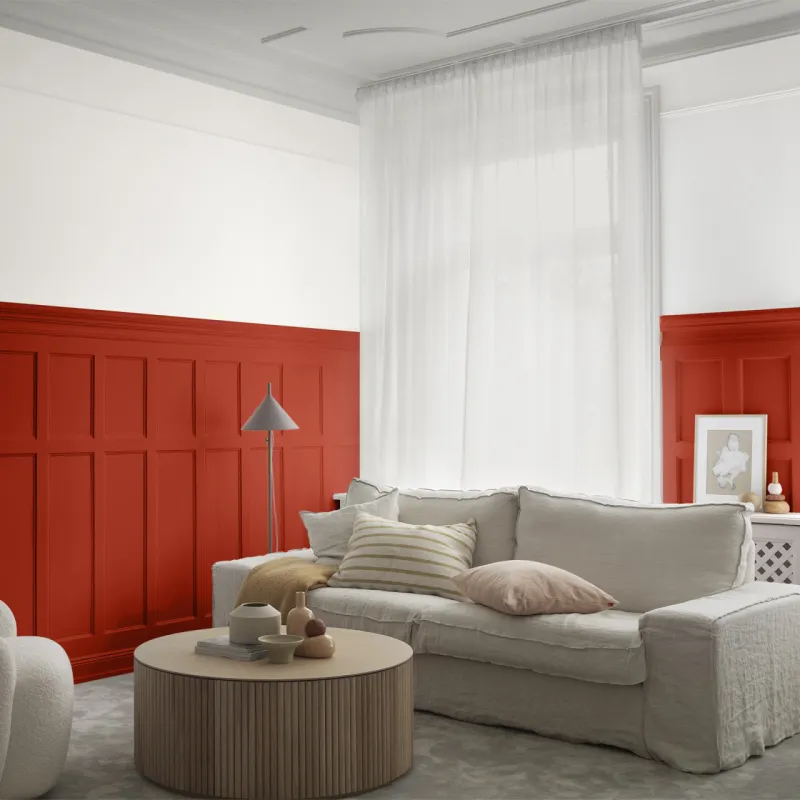 Om hösten skulle ha en färg kanske det skulle vara den här? Rooster Crest är en djup, mustig och mörk röd nyans som ger en kraftfull och varm atmosfär till ditt utrymme. Med sin starka karaktär skapar den en sofistikerad och dramatisk känsla. Rooster Crest harmoniserar perfekt med andra varma toner av brunt, rött, gult och grönt.