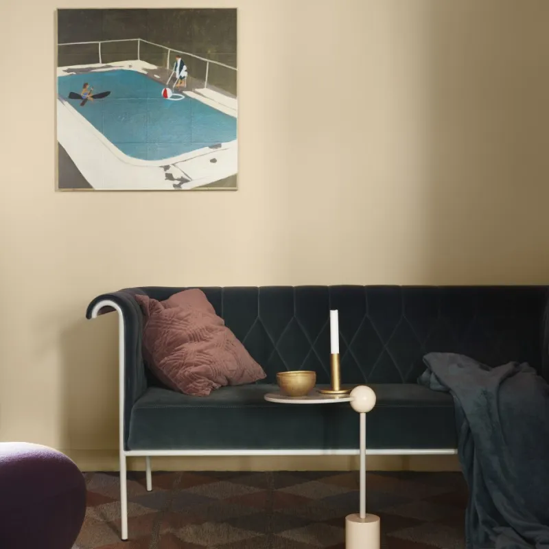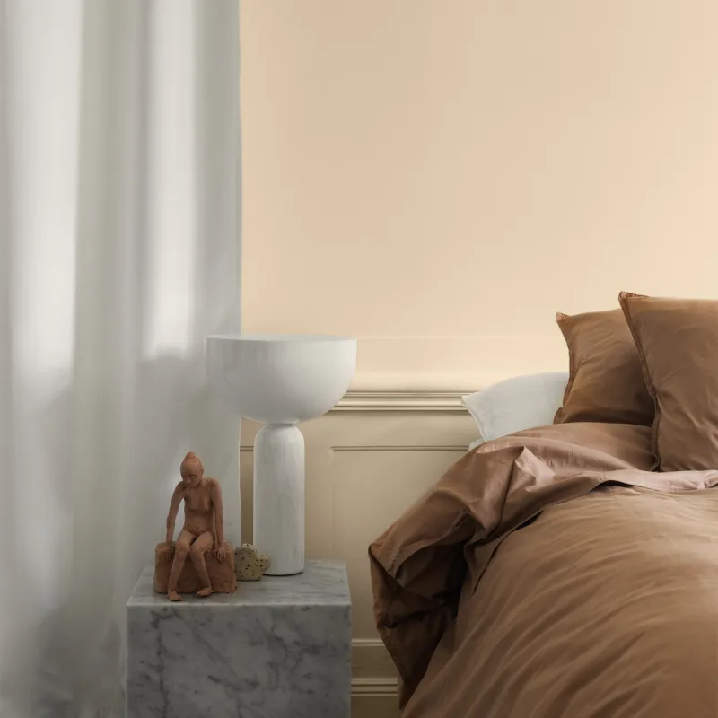 Kulören Strand är som en svensk sandstrand på sommaren – ljust och drömskt varmbeige. Den harmoniserar med många andra kulörer, men trivs extra fint ihop med varma toner av vitt, gult, grönt – och även med andra beige kulörer.
