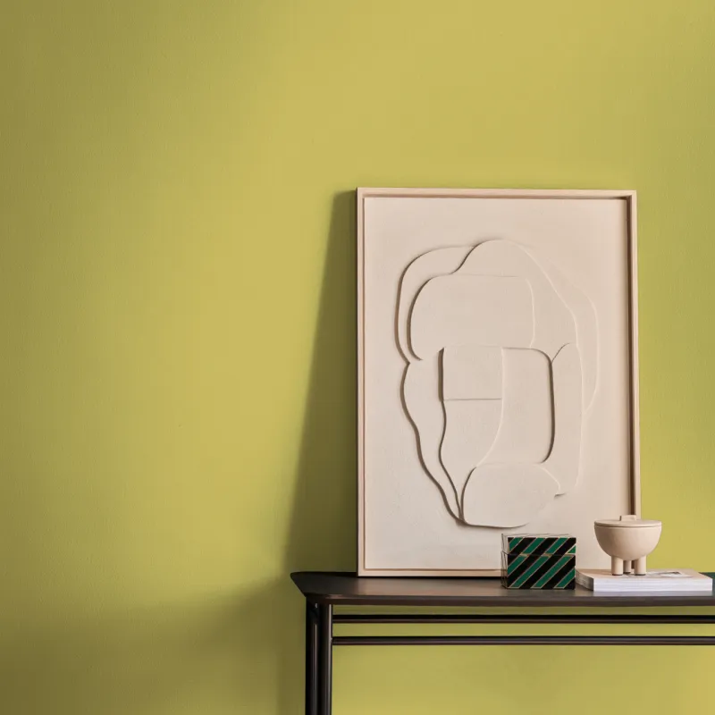 Key Lime Pie är en mjuk, gulgrön kulör som både lugnar och väcker liv i ett rum. Den balanserar en behaglig harmoni med en subtil energi som låter väggarna andas. Denna gulgröna ton trivs särskilt bra med naturliga material och dämpade jordtoner.