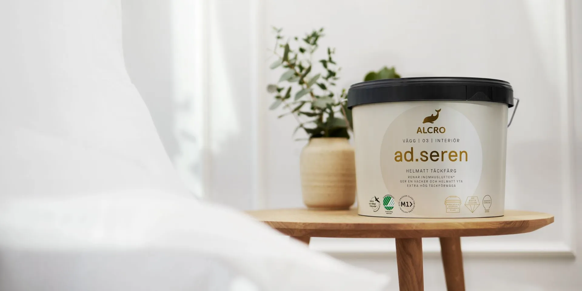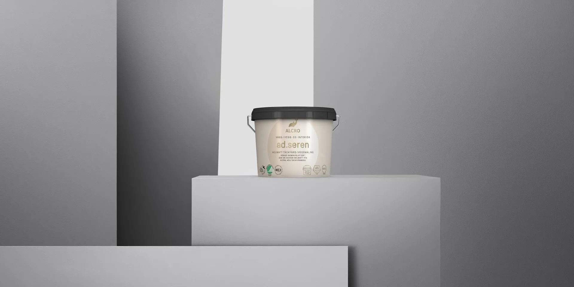 ad.seren är en grund- och täckfärg i ett som ger en vacker helmatt yta med extra hög täckförmåga, miljömärkt med Svanen och M1-certifierad.
