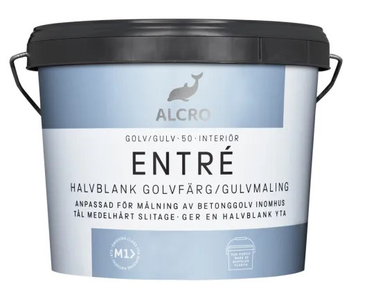 Entré Halvblank Golvfärg är en golvfärg för målning av betonggolv, i första hand inomhus, som utsätts för medelhårt slitage i t.ex. bostadsutrymmen, källargångar, villagarage m.m.. Även balkonggolv och betongtrappor utvändigt kan målas med Entré Halvblank Golvfärg, men kräver tätare underhållsmålning då väder och vind påskyndar åldrandet och slitage av färgskiktet.